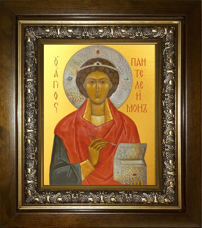 Пантелеймон ВЛКМЧ и целитель 14х18 в киоте 20х24, арт. km_25_466