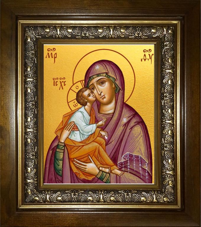 Акафистная икона Божией Матери 14х18 в киоте 20х24, арт. km_25_600