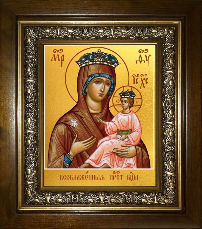 Всеблаженная икона Божией Матери 14х18 в киоте 20х24, арт. km_25_609