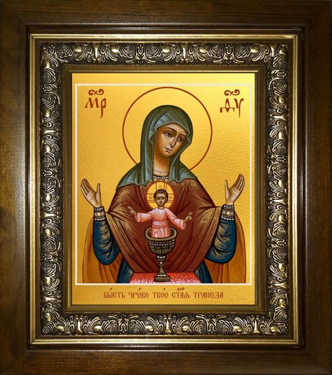 Бысть Чрево Твое Святая Трапеза икона Божией Матери 14х18 в киоте 20х24, арт. km_25_624