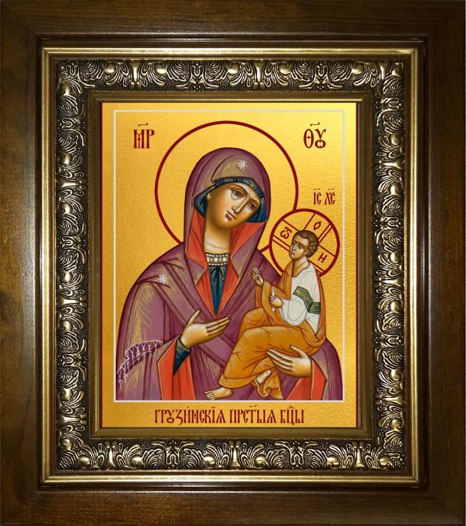 Грузинская икона Божией Матери 14х18 в киоте 20х24, арт. km_25_639