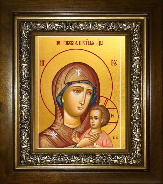 Петровская икона Божией Матери 14х18 в киоте 20х24, арт. km_25_665