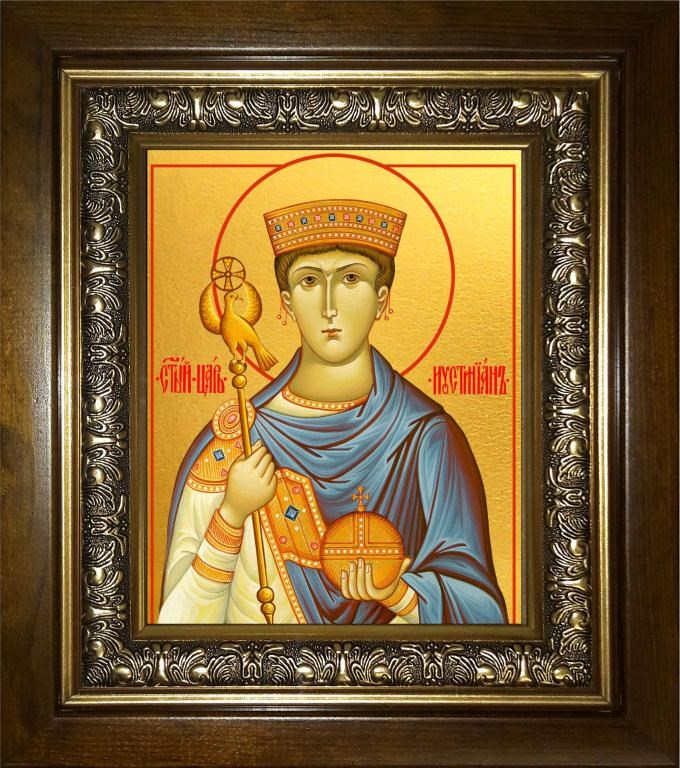 Иустиниан царь 14х18 в киоте 20х24, арт. km_25_701