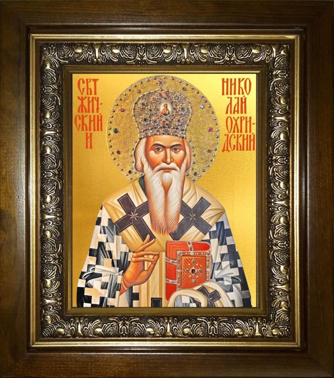 Николай Сербский, святитель 14х18 в киоте 20х24, арт. km_25_793