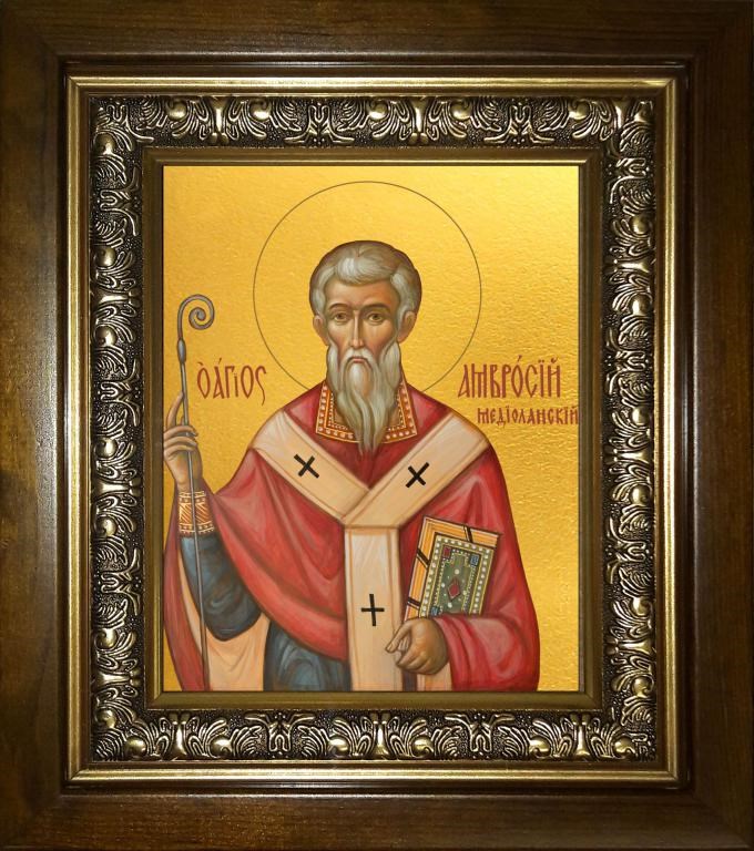 Амвросий Медиоланский святитель 14х18 в киоте 20х24, арт. km_25_837