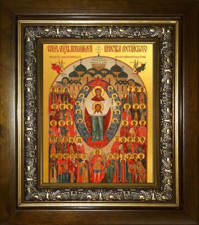 Собор святых покровителей воинства Российского 14х18 в киоте 20х24, арт. km_25_878