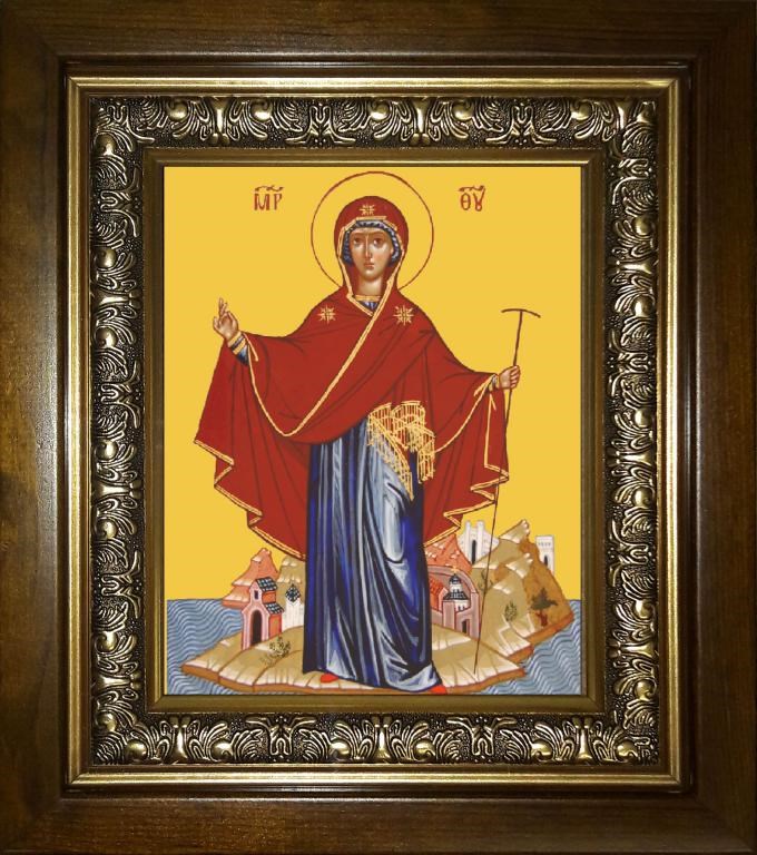 Афонская икона Божией Матери 14х18 в киоте 20х24, арт. km_25_979