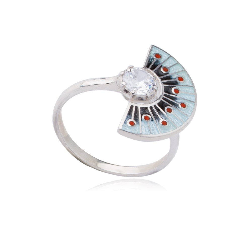 Серебряное кольцо с фианитами «Фламенко», выполненное в серебре 925* по технологии горячего эмалирования.