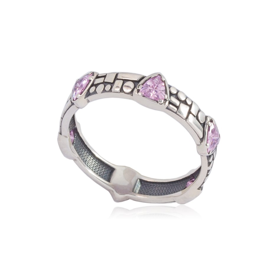 Основой для кольца служит серебро 925-й пробы, которое известно высокими эксплуатационными свойствами. Канальное крепление фианитов придаёт особого блеска аксессуару.