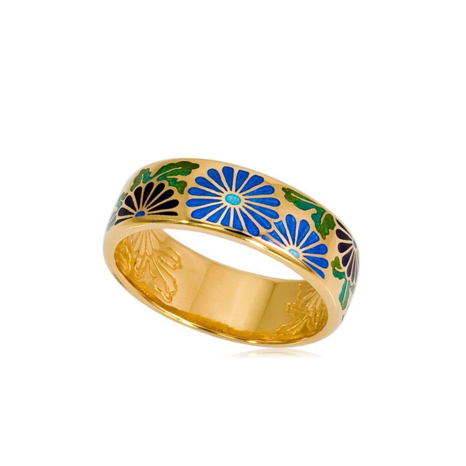 Кольцо «Георгины», выполненное в технике горячей эмали, наделено особым радужным колоритом.