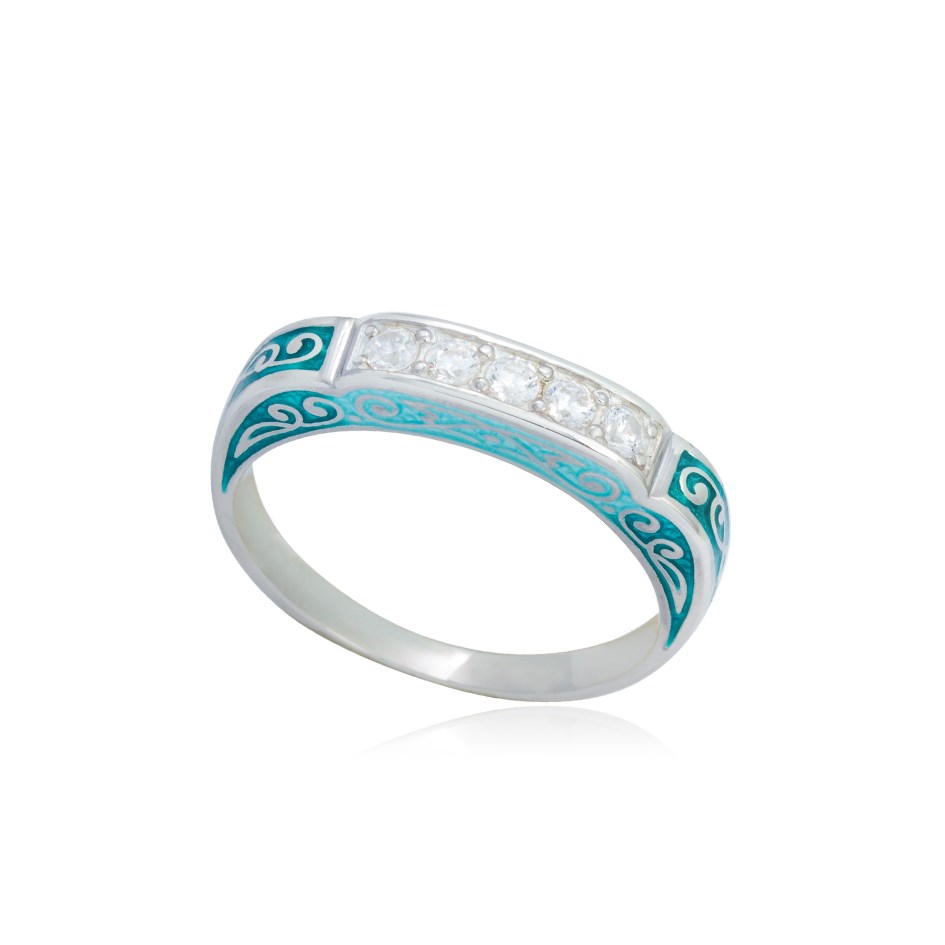 Кольцо с фианитами «Греческое» выполнено в серебре 925* по технологии горячего эмалирования.