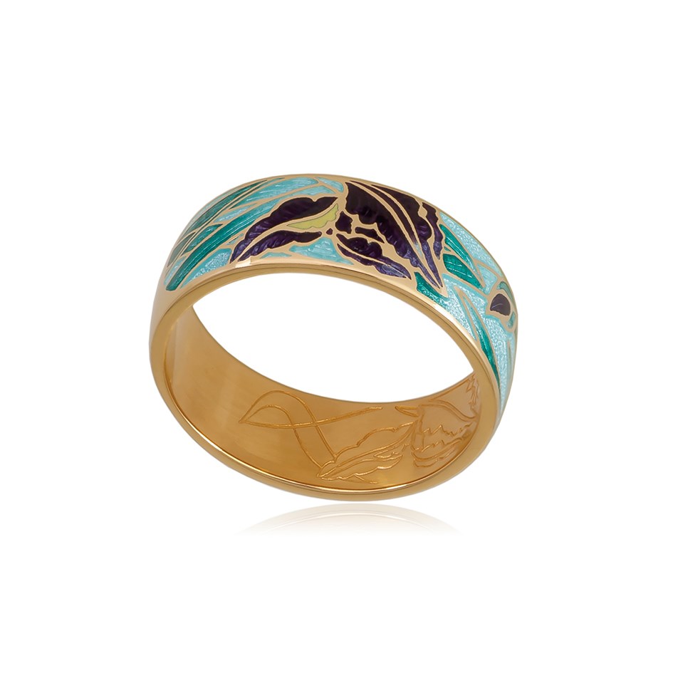 Кольцо из серебра «Ирисы» (золочение), морская волна