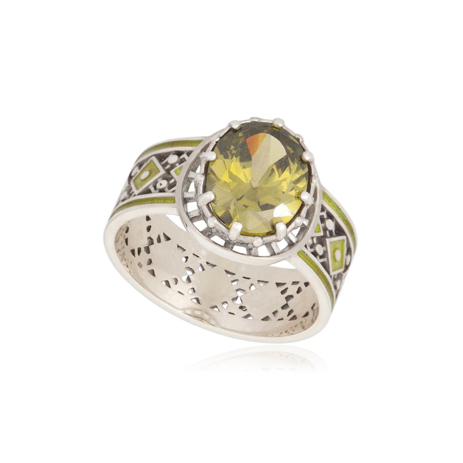 Кольцо «Калейдоскоп» выполнено в серебре 925* по технологии горячего эмалирования, вставки – фианит.