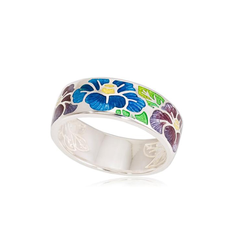 Кольцо из серебра «Камелия», сине-фиолетовое