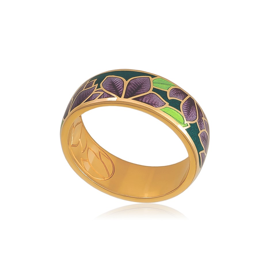 Кольцо «Клематис» выполнено в серебре 925* с золочением 999* по технологии горячего эмалирования.