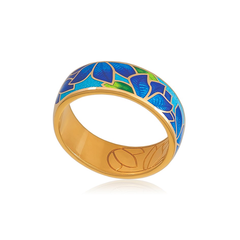 Кольцо «Клематис» выполнено в серебре 925* с золочением 999* по технологии горячего эмалирования.