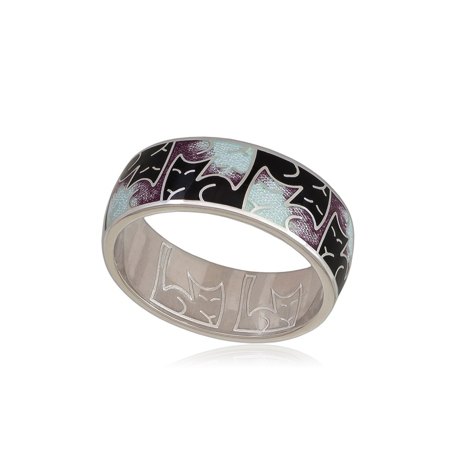 Кольцо «Котики Инь-Ян», выполненное в серебре 925* по технологии горячего эмалирования.