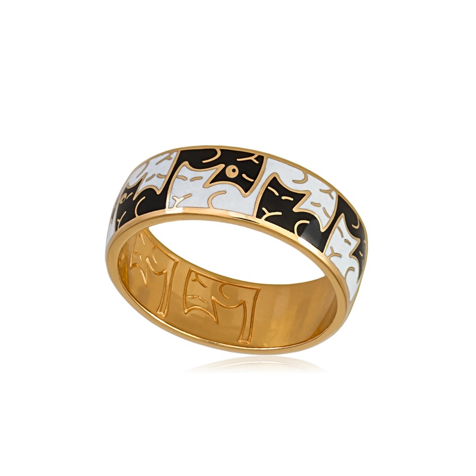 Кольцо «Котики Инь-Ян», выполненное в серебре 925* с золочением 999* по технологии горячего эмалирования.