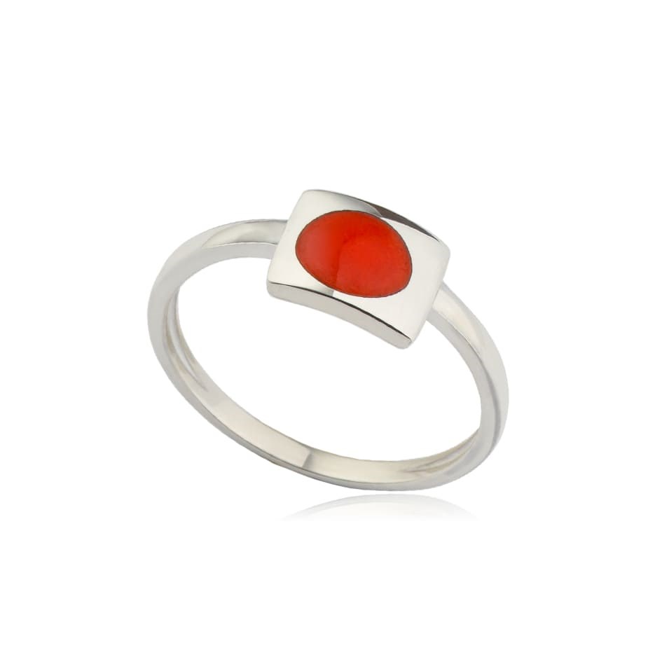 Кольцо из серебра «Малевич», красный круг, горячая эмаль