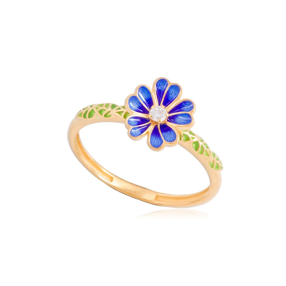 Серебряное кольцо с фианитом «Мальва», выполненное в серебре 925* по технологии горячего эмалирования.