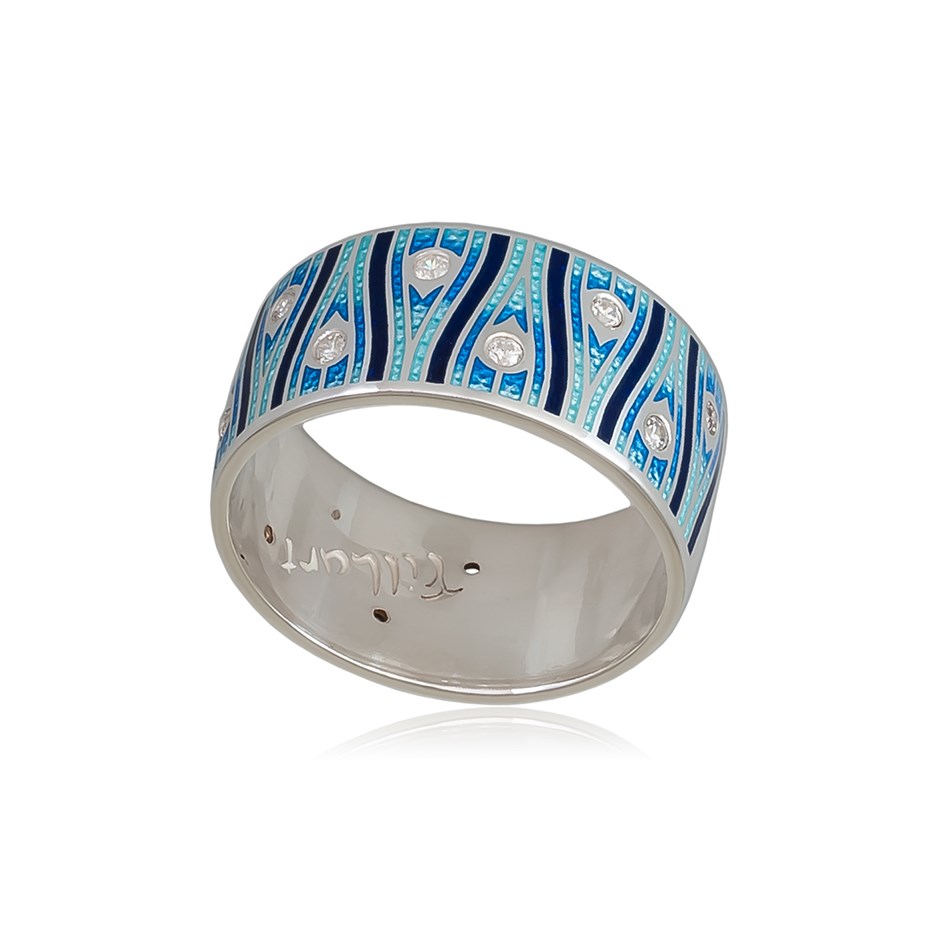 Серебряное кольцо с фианитами «Модерн. Перо павлина» , выполненное в серебре 925* по технологии горячего эмалирования