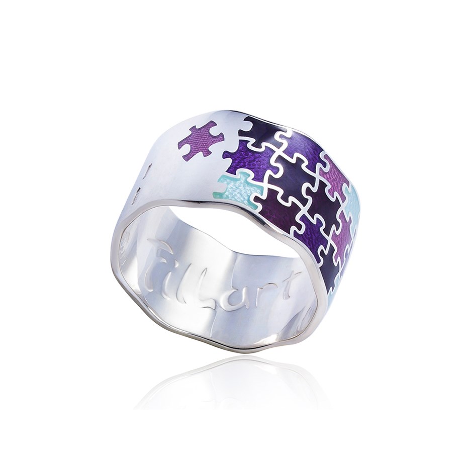 Эксклюзивное кольцо с эмалью в стиле наив-арт придутся по душе как юным девушкам, так и натурам творческим и смелым. Рисунок украшения в виде разноцветных пазлов выглядит мило и поднимает настроение. Кольцо изготовлено по авторскому дизайну мастерами ювелирной студии FILLART.