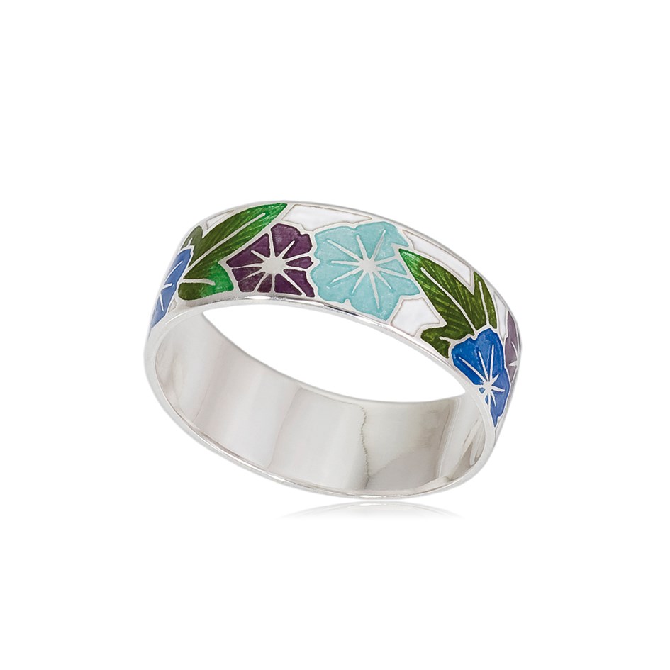 Кольцо «Петуния» подчеркивает легкий характер и искренность своей владелицы, ее открытое сердце. Цветущие петунии разных оттенков составляют главный мотив всего комплекта. Яркие и в то же время нежные цветы, рассыпанные по всей поверхности украшения, радуют глаз и поднимают настроение. Цветовая гамма кольца звучит по-летнему беззаботно. Надев веселое украшение, его обладательница почувствует прилив положительных эмоций и радости. Кольцо «Петуния» наполнит душу гармонией и хорошим настроением.