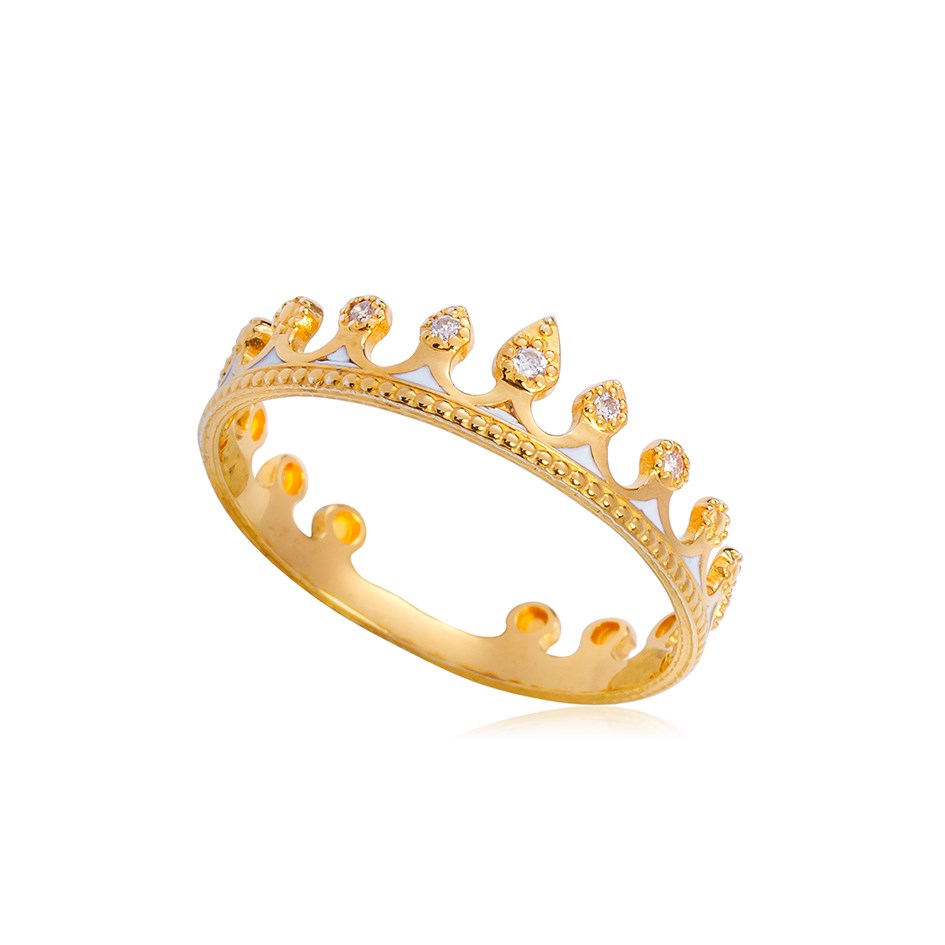 Кольцо-корона из серебра «Принцесса на горошине» (золочение), белое, эмаль