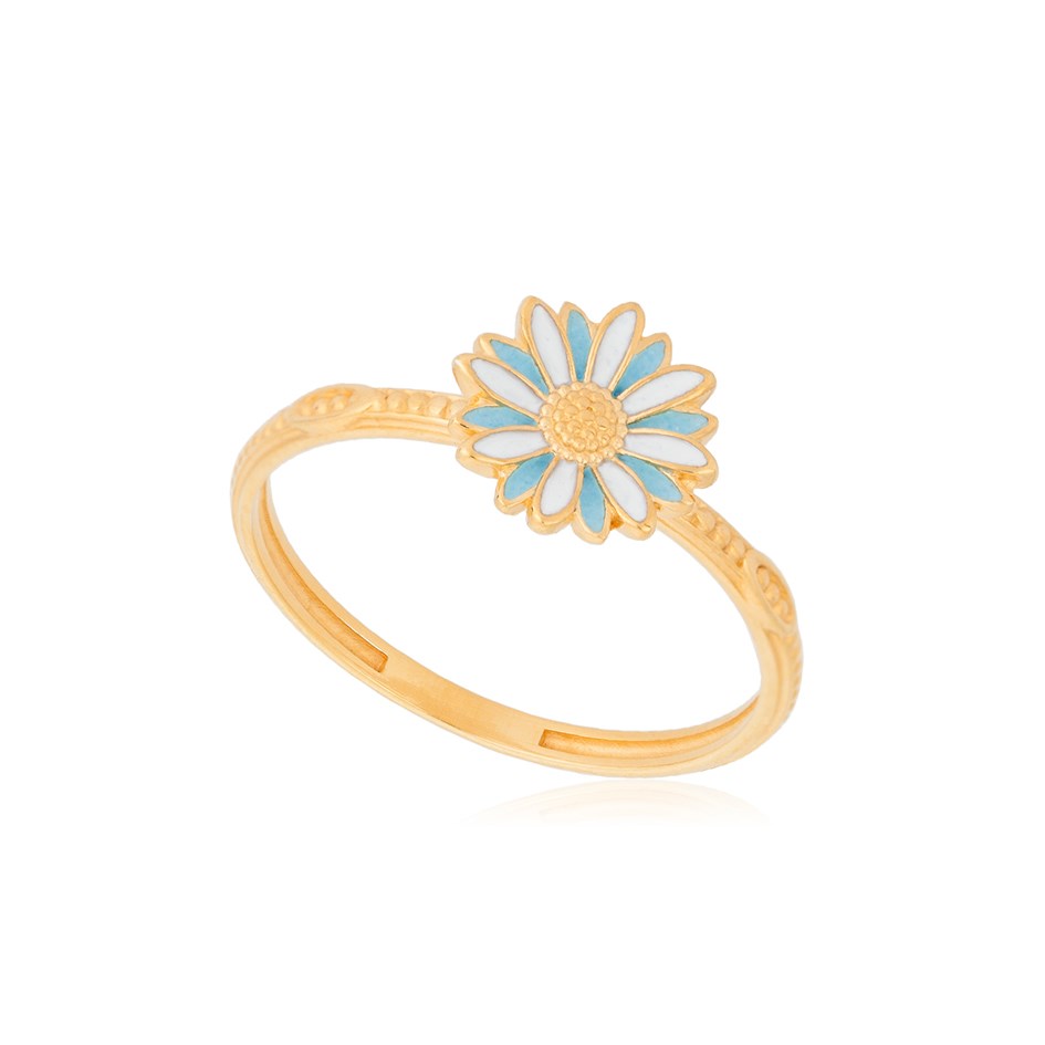Кольцо из серебра «Ромашка» (золочение), голубое