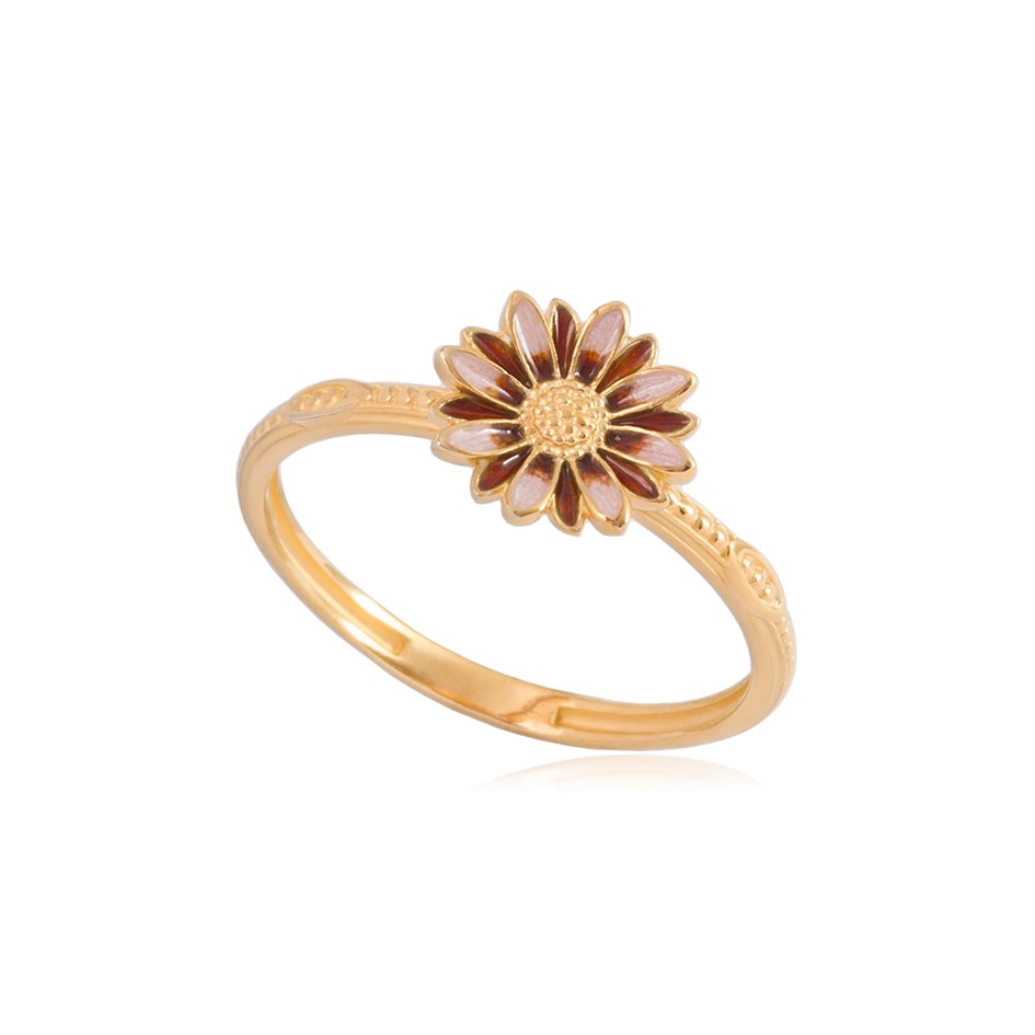 Серебряное кольцо «Ромашка», выполненное в серебре 925* с золочением 999* по технологии горячего эмалирования.
