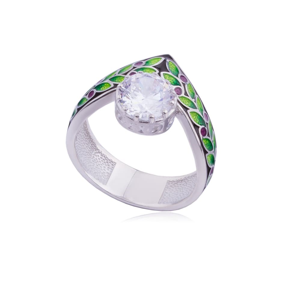 Серебряное кольцо с фианитами «Тиара», выполненное в серебре 925* по технологии горячего эмалирования, вставки – фианит.