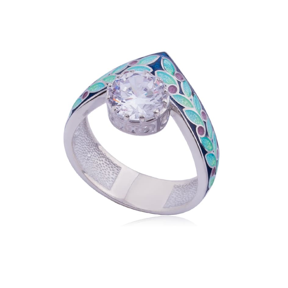 Серебряное кольцо с фианитами «Тиара», выполненное в серебре 925* по технологии горячего эмалирования, вставки – фианиты.