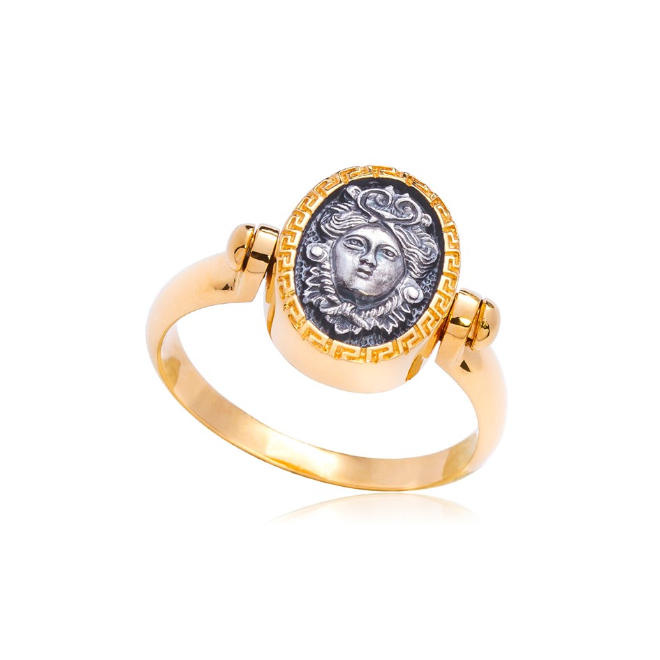 Кольцо «Валькирия» выполнено в серебре 925* с золочением 999* и чернением.