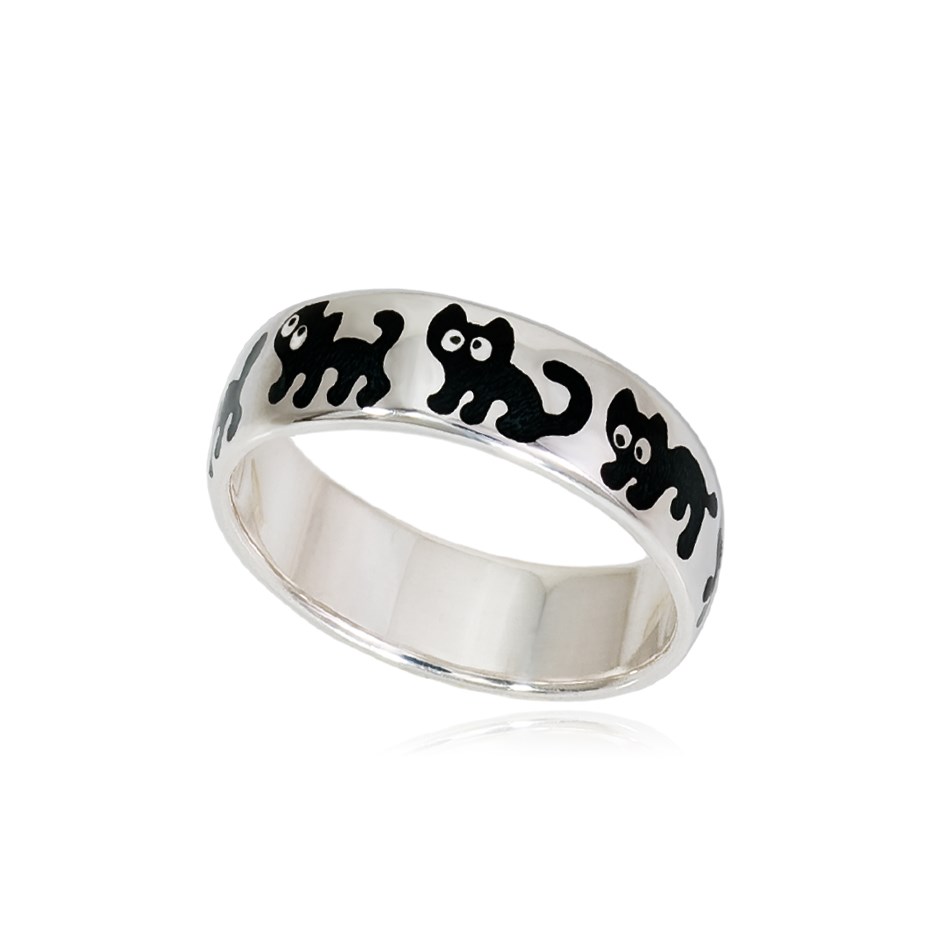Кольцо «Забавные котята», выполненное в серебре 925* по технологии горячего эмалирования.