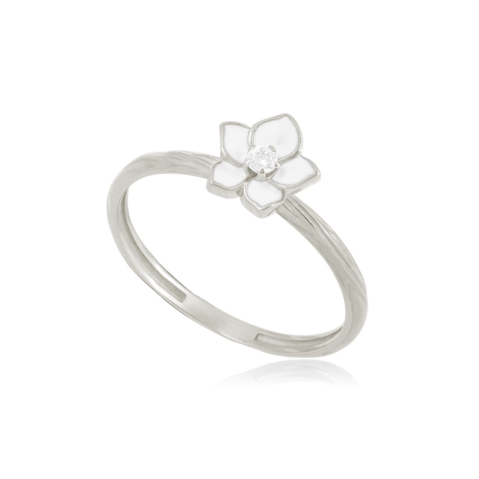Серебряное кольцо с фианитом «Жасмин», выполненное в серебре 925* по технологии горячего эмалирования.