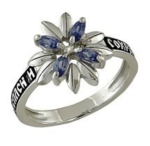 Это православное изделие - Кольцо выполнено из серебра 925 пробы. Кольцо имеет вставки из фианита в количестве 4 шт. На изделии начертаны фрагменты молитвы "Господи спаси и сохрани мя". Изделие входит в коллекцию "Духовное наследие".