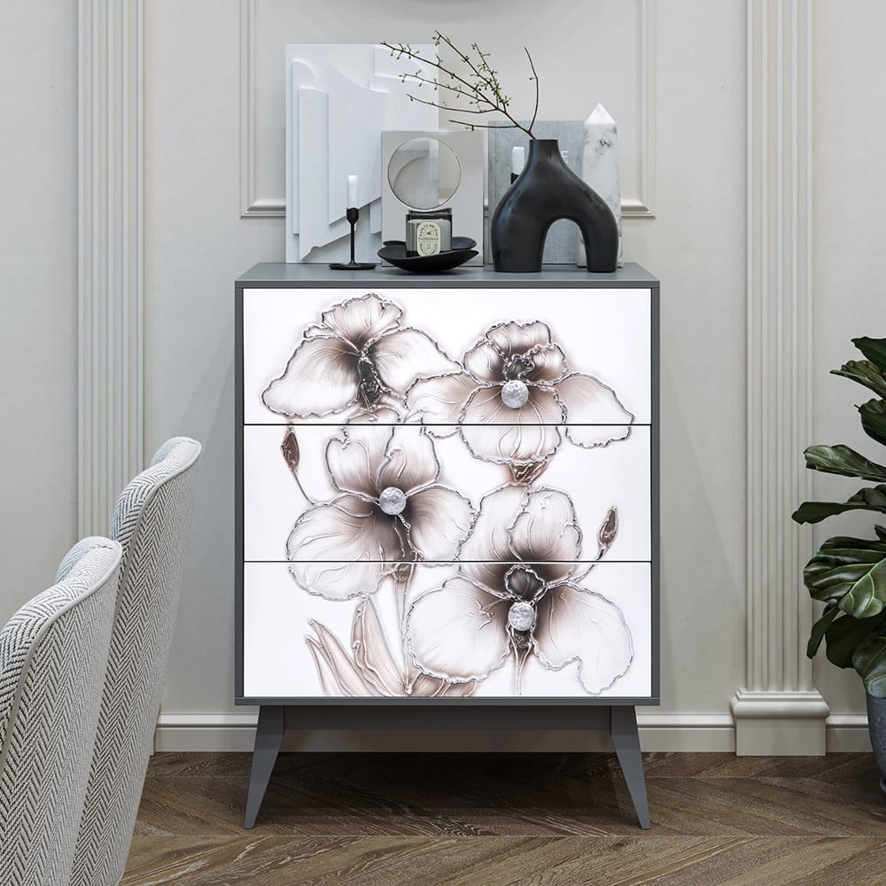 Комод из МДФ с тремя выдвижными ящиками. Комод BOGACHO - это образ современности вне времени. Конические ножки и прочный каркас выполнены из МДФ, декоративные элементы изготовлены из мраморной пудры и легированной стали, отшлифованы и патинированы вручную. Комод имеет три выдвижных ящика и доставляется в собранном виде. Добавьте в интерьер своего пространства уюта и атмосферу гармонии вместе с эксклюзивными изделиями BOGACHO.