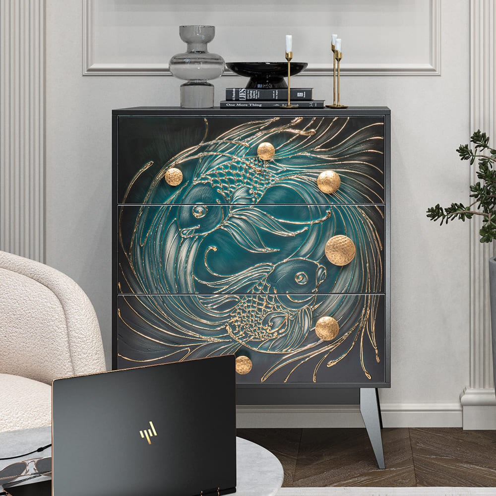 Комод из МДФ с тремя выдвижными ящиками. Комод BOGACHO - это образ современности вне времени. Конические ножки и прочный каркас выполнены из МДФ, декоративные элементы изготовлены из мраморной пудры и легированной стали, отшлифованы и патинированы вручную. Комод имеет три выдвижных ящика и доставляется в собранном виде. Добавьте в интерьер своего пространства уюта и атмосферу гармонии вместе с эксклюзивными изделиями BOGACHO.