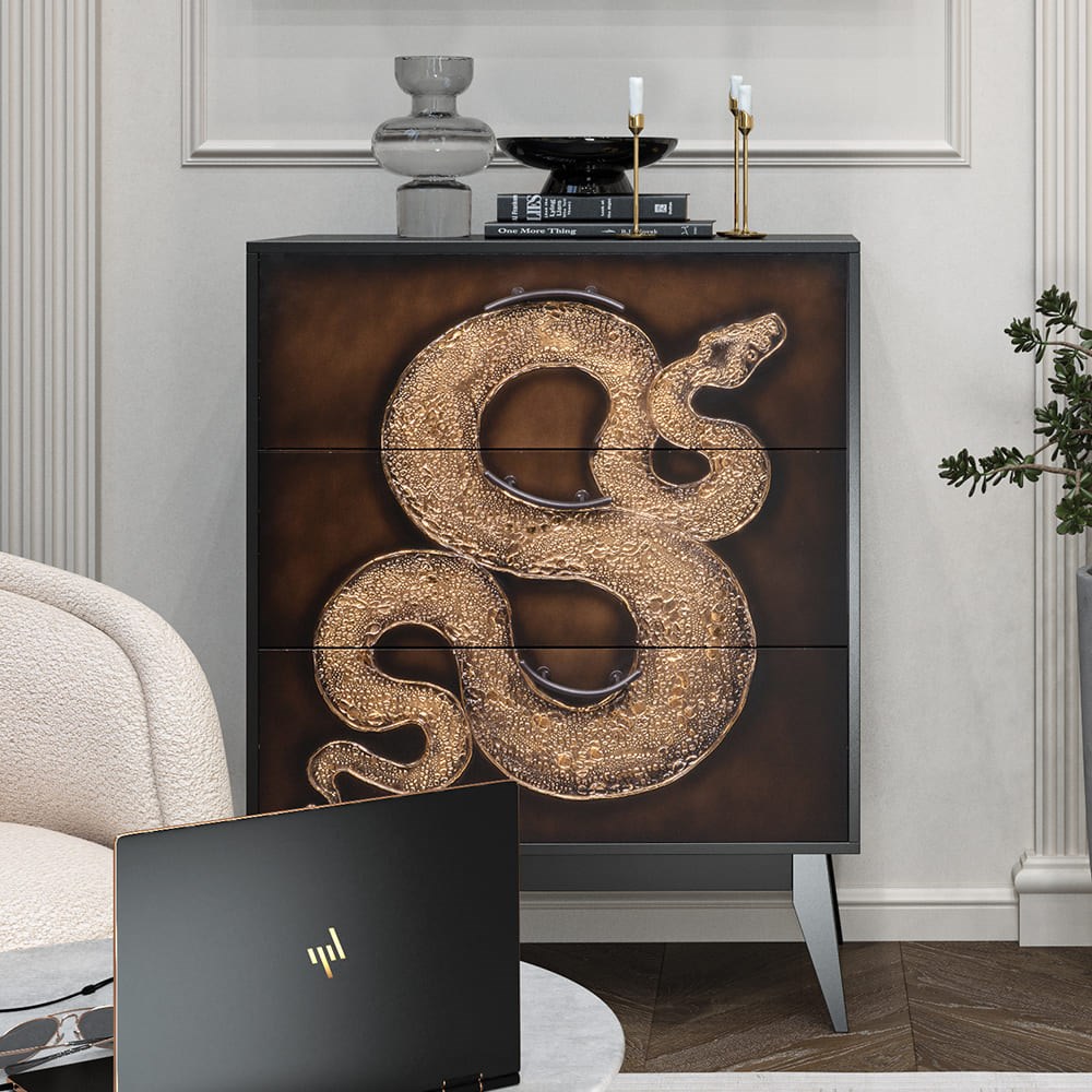 Комод из МДФ с тремя выдвижными ящиками. Комод BOGACHO - это образ современности вне времени. Конические ножки и прочный каркас выполнены из МДФ, декоративные элементы изготовлены из мраморной пудры и легированной стали, отшлифованы и патинированы вручную. Комод имеет три выдвижных ящика и доставляется в собранном виде. Добавьте в интерьер своего пространства уюта и атмосферу гармонии вместе с эксклюзивными изделиями BOGACHO.