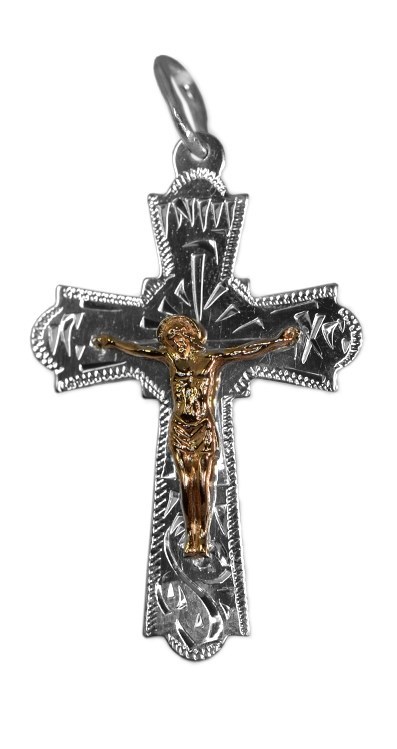 Отличный освященный крестик из золота 585* и серебра 925* будет радовать владельца не один год; мы поможем подобрать подходящий комплект к изделию.