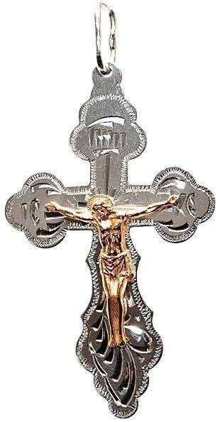 Это православное изделие - Крест выполнено из комбинации серебра 925 и золота 585 проб. Изделие входит в коллекцию "Москва златоглавая".