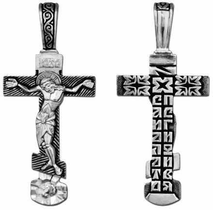 Это православное изделие - Крест выполнено методом литья из серебра 925 пробы. Поверхность изделия покрыта методом чернения (оксидирования). Изделие входит в коллекцию "Санкт - Петербург".