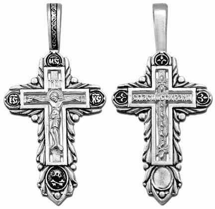 Добротный освященный крестик из серебра 925*, покрытый чернением, будет ценным подарком любому верующему человеку, имеет государственную ювелирную бирку, что гарантирует долгую службу.