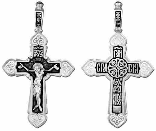 Это православное изделие - Крест выполнено методом литья из серебра 925 пробы. Поверхность изделия покрыта методом чернения (оксидирования). Изделие входит в коллекцию "Санкт - Петербург".