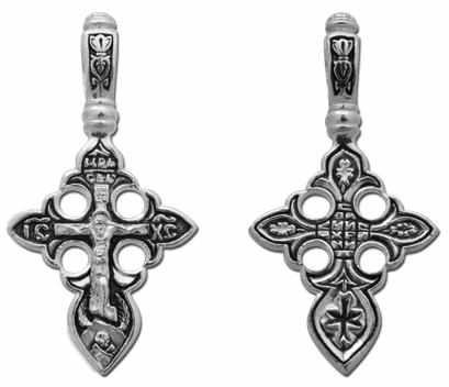 Это православное изделие - Крест выполнено методом литья из серебра 925 пробы. Поверхность изделия покрыта методом чернения (оксидирования). Изделие входит в коллекцию "Санкт - Петербург".