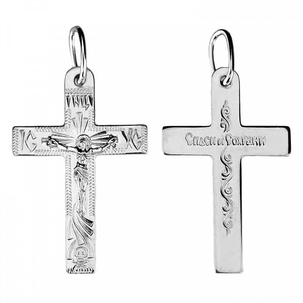 Это православное изделие - Крест выполнено методом литья из серебра 925 пробы. Поверхность изделия покрыта методом чернения (оксидирования). Изделие входит в коллекцию "Москва златоглавая".