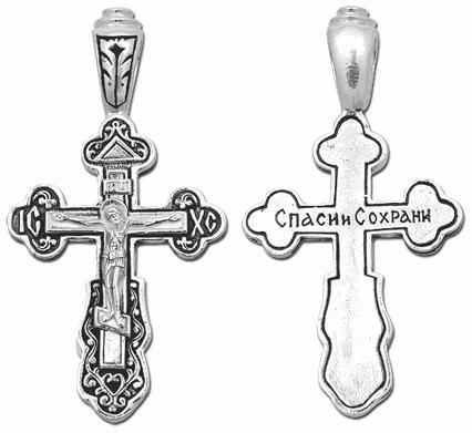 Это православное изделие - Крест выполнено методом литья из серебра 925 пробы. Поверхность изделия покрыта методом чернения (оксидирования). Изделие входит в коллекцию "Санкт - Петербург".