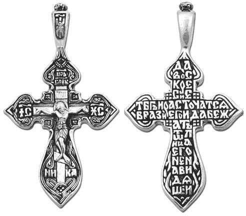 Это православное изделие - Крест выполнено методом литья из серебра 925 пробы. Поверхность изделия покрыта методом чернения (оксидирования). Изделие входит в коллекцию "Санкт - Петербург".