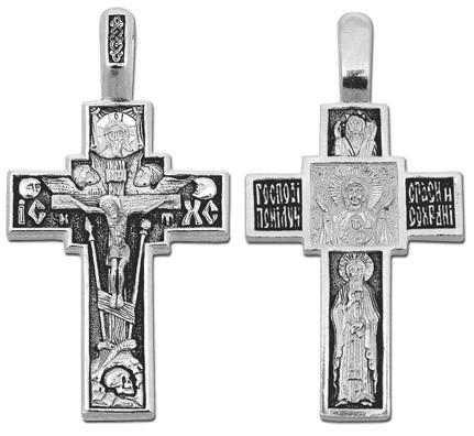 Это православное изделие - Крест выполнено методом литья из серебра 925 пробы. Поверхность изделия покрыта методом чернения (оксидирования). Изделие входит в коллекцию "Санкт - Петербург".