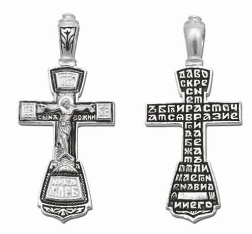 Это православное изделие - Крест выполнено методом литья из серебра 925 пробы. Поверхность изделия покрыта методом чернения (оксидирования). Изделие входит в коллекцию "Санкт - Петербург".